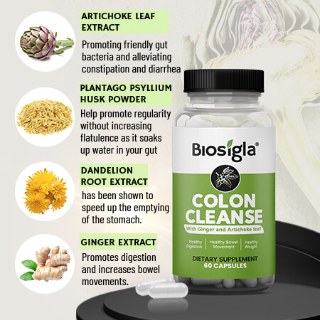 Our Biosigla Colon Cleanse Supplement contains a potent blend promoting: